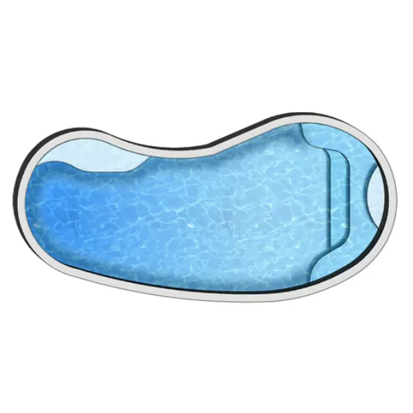 The Catalina is a tried and true fiberglass swimming pool that we’ve sold for several decades! This swimming pool is a conservative Kidney Shape with a shallow end entry step and deep end of 5′ 9″. Many of our customers appreciate the simple design of the Catalina and the easy pool maintenance it offers.