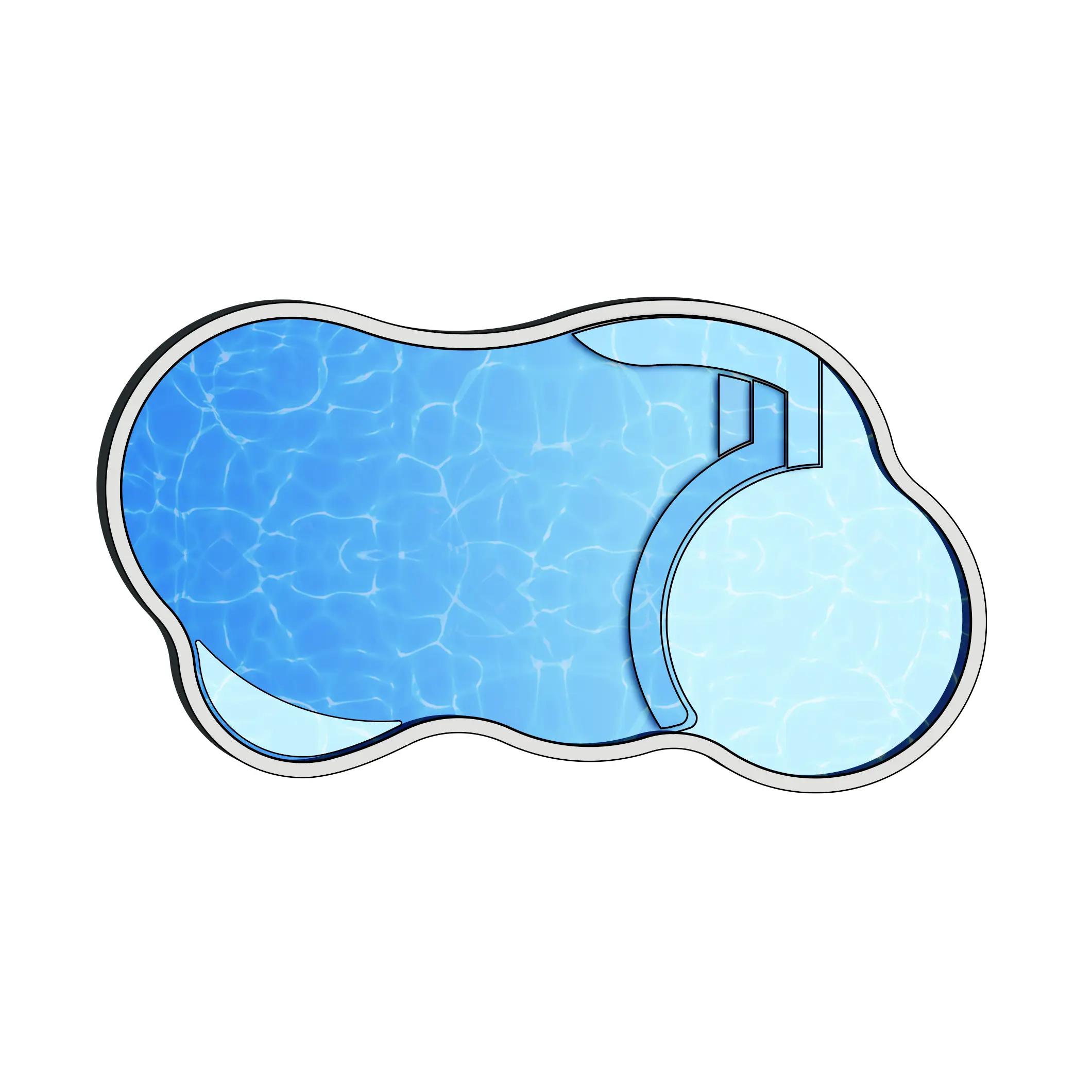 The Huntington Beach provides a massive Free Form Beach Entry! This is truly the remarkable aspect of the Huntington Beach. With over 10′ of tanning ledge, this beach entry model is able to hold multiple lounge chairs side by side. Plop in, grab a seat and pour yourself your favorite cocktail. This fiberglass pool is designed for maximum relaxation and is our way to bring the beach right to your back doorstep!